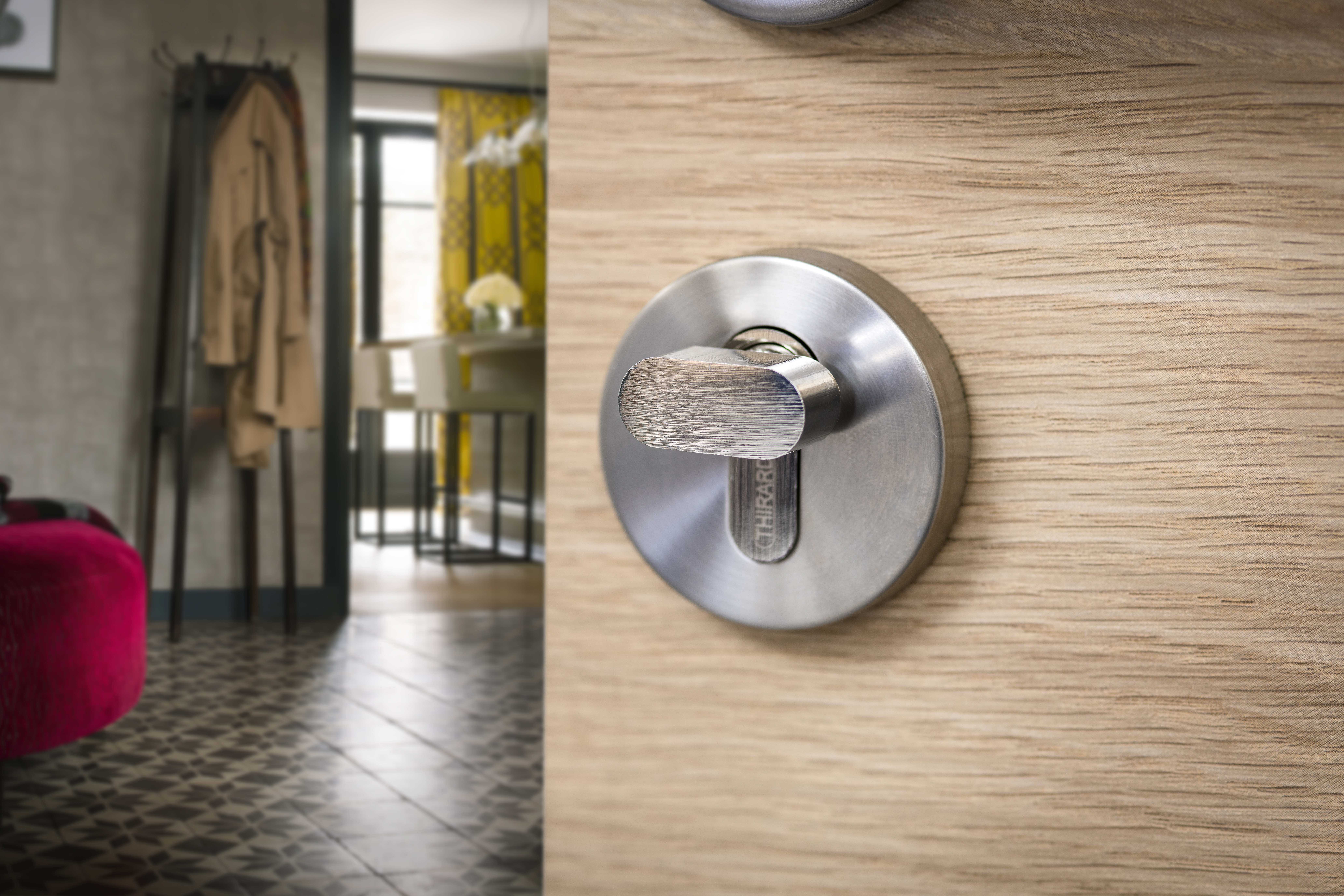 - A bouton : peut condamner une porte de l’intérieur en tournant le bouton.
