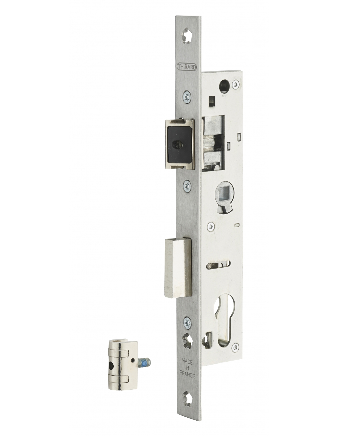 Boitier de serrure encastrable à cylindre pour menuiserie métallique, axe 22mm, bouts carrés, zingué - THIRARD