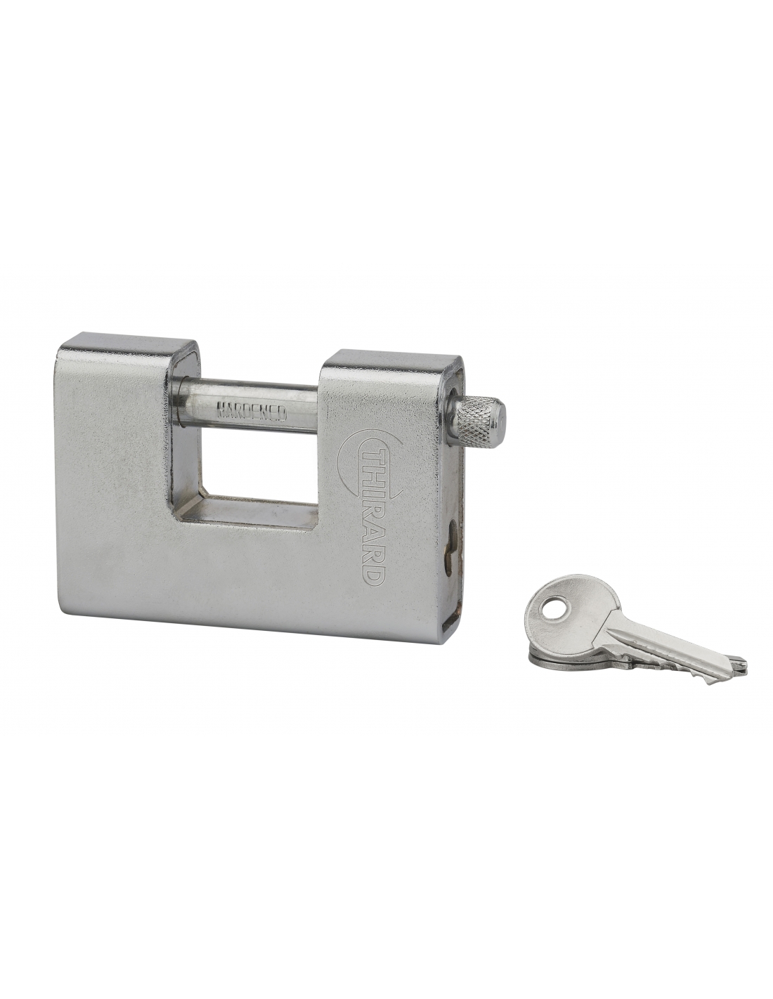Cadenas à clé Mach 3, laiton, extérieur, anse haute acier, 40mm, 2 clés - THIRARD