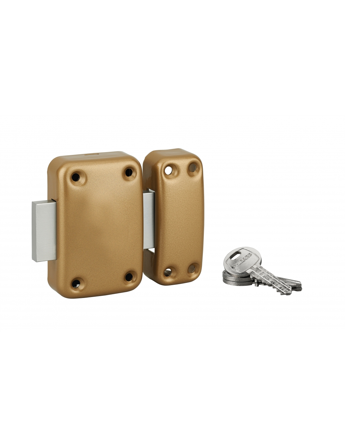 Verrou sans bouton Corvette pour porte de cave, cylindre 40mm, acier, 3 clés, époxy bronze - THIRARD