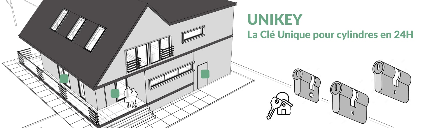 Notre offre vous propose un système UNIKEY expédiée en 24h. En revanche, cette solution est disponible sur une sélection de dimensions et de modèles limitée. Pour plus de modularité et de choix, nous disposons également d'une offre Clé Unique, sur fabrication auprès de notre fournisseur THIRARD.